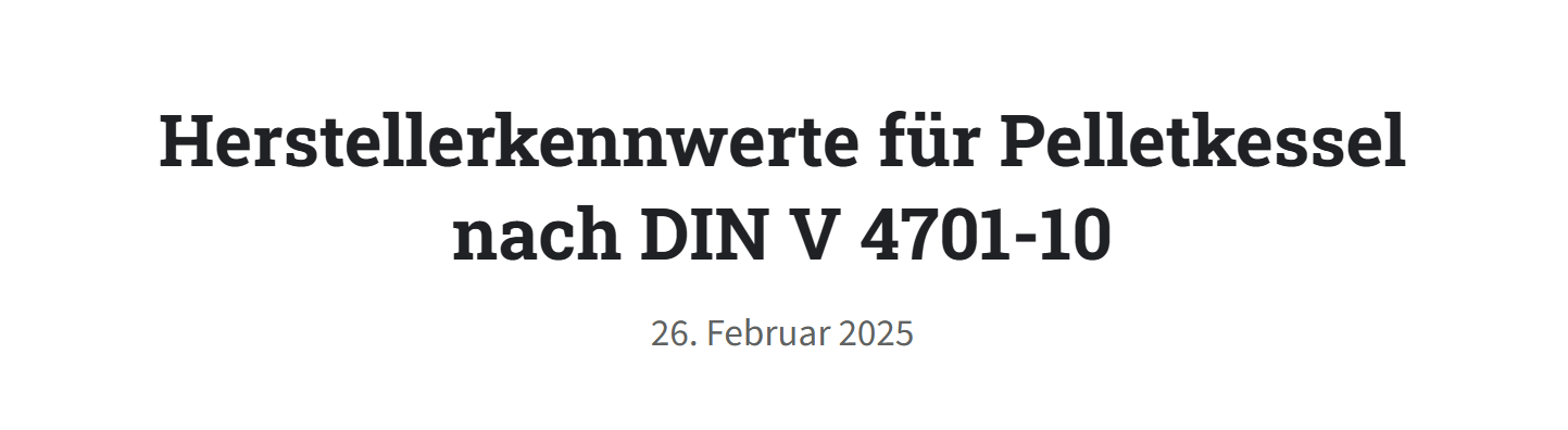 Herstellerkennwerte für Pelletkessel nach DIN V 4701-10