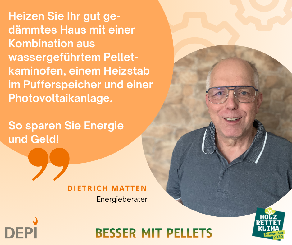 Berlin, 21.12.2023 • Vollkommen überzeugt von Pellets: der selbstständige Energieberater Dietrich Matten aus dem Enzkreis bei Stuttgart. Zu welcher Heizung er seinen Kunden rät, die im älteren Bestandsgebäude wohnen, und welche Kombinationsmöglichkeiten es bei den verschiedenen Heizsystemen gibt, verrät er gerne.