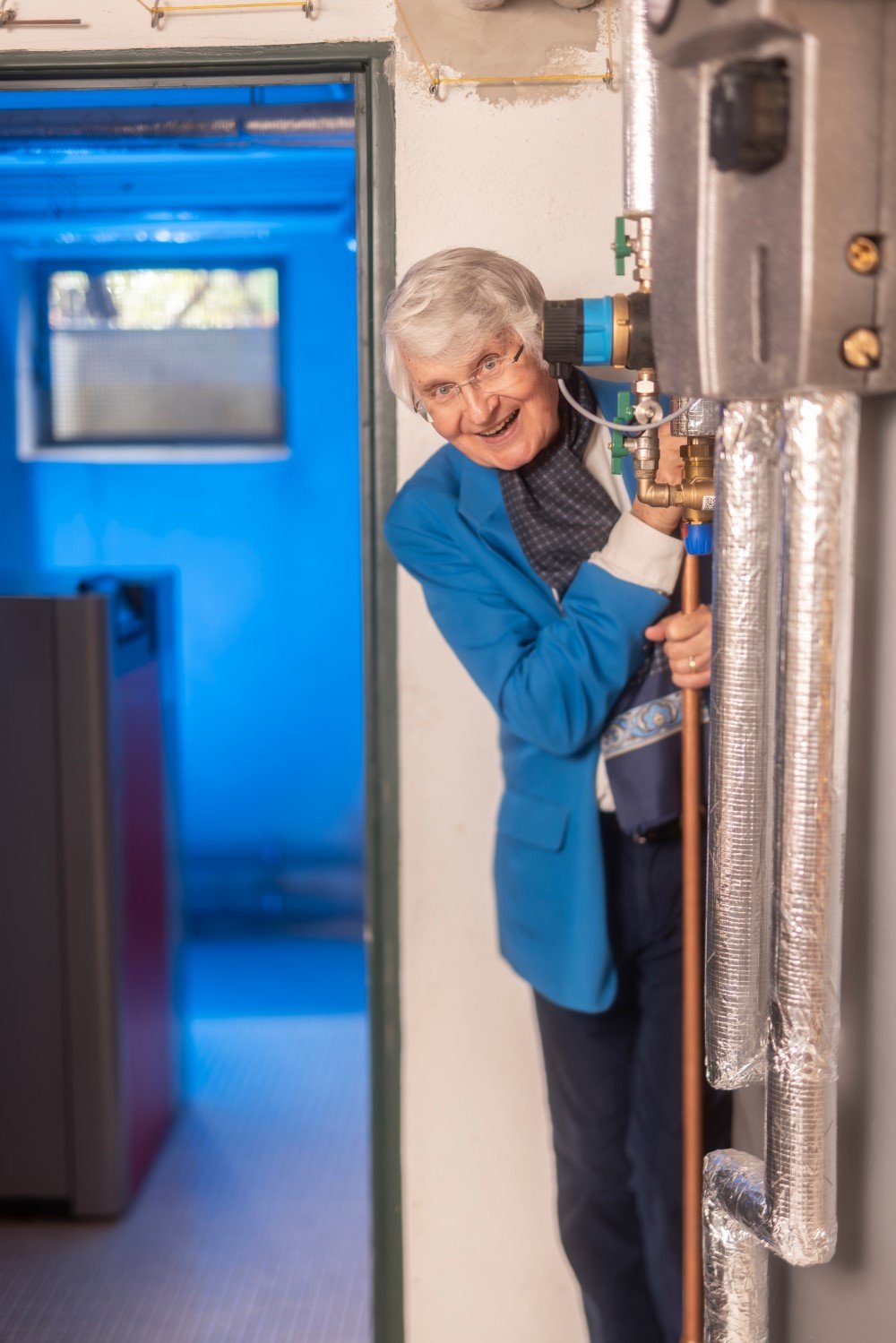 Die Pensionäre sind überzeugt: „Unsere neue Heizung ist so effektiv, das ist phänomenal. Nur 0,02 Gramm Staubemissionen pro Kubikmeter Abluft – weniger geht ja nicht mehr!“