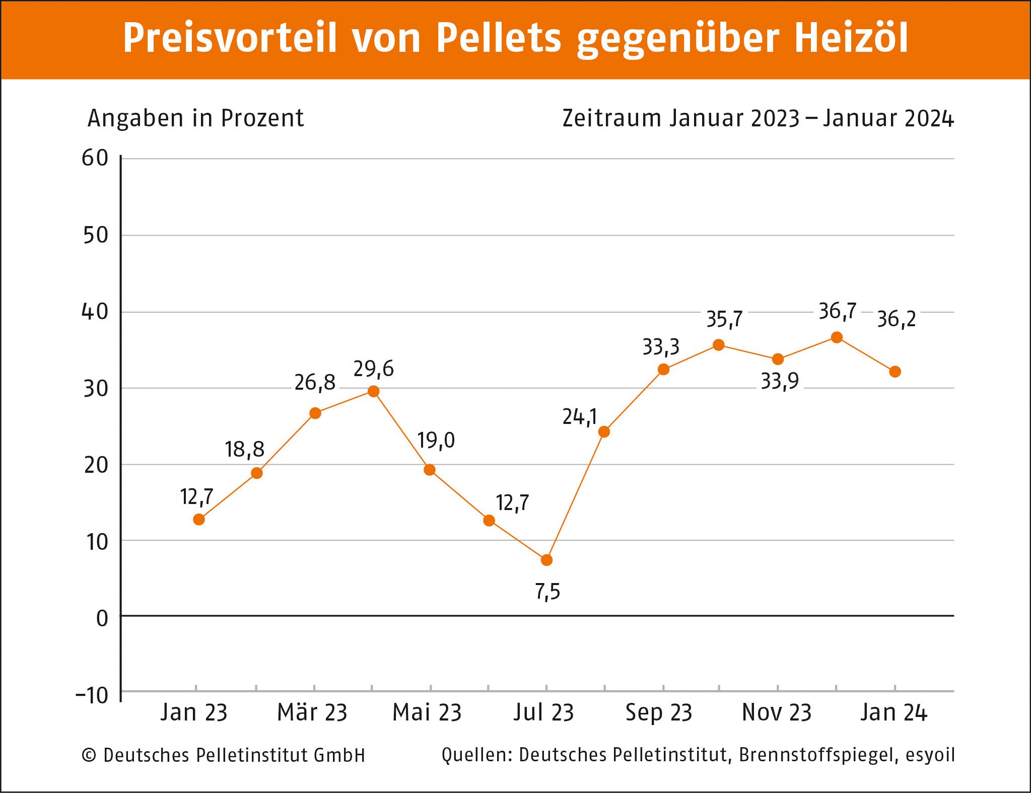 „Pellets sind derzeit ausreichend vorhanden. Das große Angebot führt im Januar zu einem attraktiven Preis“, erklärt DEPI-Geschäftsführer Martin Bentele. „Für Pelletheizer ist das eine gute Neuigkeit zum Jahresbeginn, denn sie können beim Brennstoffkauf zum einen den Geldbeutel schonen und sich außerdem sicher sein, dass die Versorgung auch für die letzten Wintermonate gewährleistet ist.“ Das DEPI weist aber darauf hin, dass aufgrund der anhaltenden Winterwitterung und der damit verbundenen Nachfragesituation absehbar mit längeren Lieferzeiten und auch steigenden Preisen zu rechnen sei.